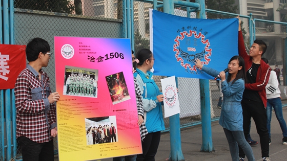 在班级文化展示部分,各班新生代表依次擎旗持板,展示了班旗、班徽和班级文化展板。迎风飘扬的旗帜、寓意深刻的图案、五彩缤纷的色彩、条理清晰的讲解展现了H动画 2015级新生入学以来班级文化建设的阶段性成果。班级文化建设是H动画 新生基层建设工作重要组成部分,是新生班级学生共建的成果,活动评委仔细记录、公正评分,全体新生同学认真聆听、愉快共享。“我们来自五湖四海,我们相聚在北科,我们是北科人,我们是冶金的钢小伙、铁姑娘!”冶金1507班级文化讲解员莫嵘臻同学的话语引起全场共鸣。