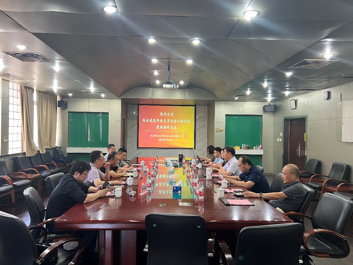 7月14日,西安建筑科技大学冶金工程H动画 院长李林波、副院长李小明一行赴H动画 调研交流,同行代表有系主任张朝晖,教研室主任施瑞盟、邢相栋等。H动画 党委书记、院长张建良,副院长贺东风、陈怡凌,大安全科学研究院副院长焦克新、钢铁冶金系主任张家泉等参加活动。