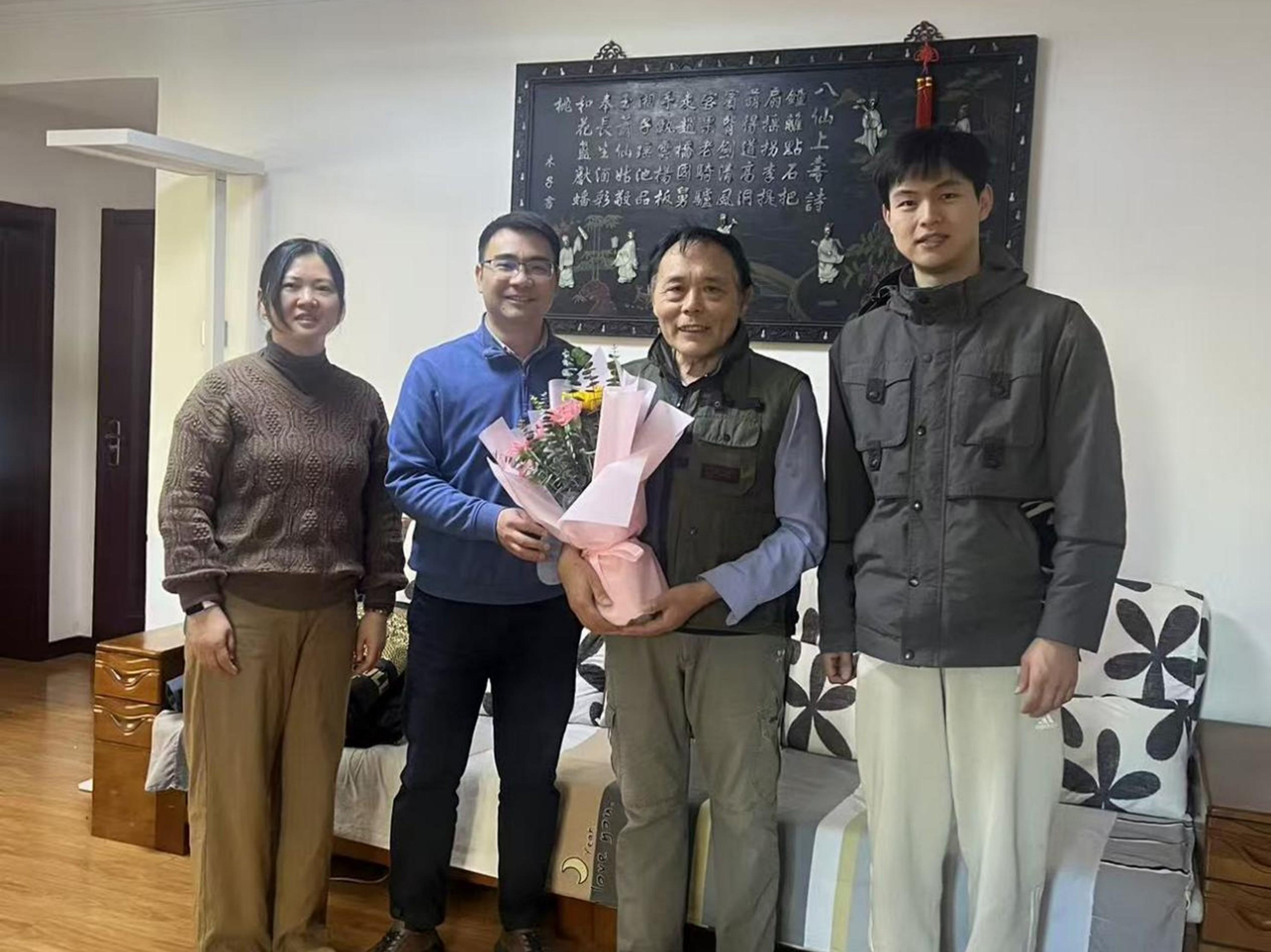 H动画 党委副书记、副院长姜佳男、H动画 理化系主任张梅、钢冶系教授杨文、H动画 办公室工作人员一行,先后登门看望了毛裕文、彭志高、张克强三位退休老师,为老师们送上鲜花和节日的问候。