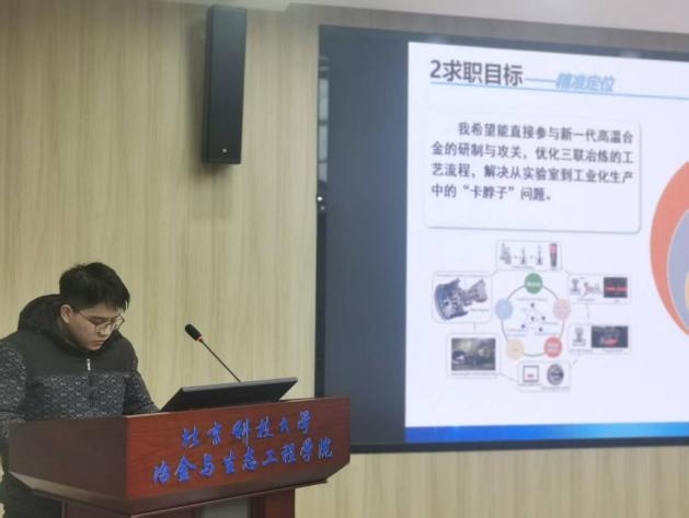 各位选手齐聚一堂,他们精心准备,用生动有趣的语言和丰富多样的形式,向在场的评委老师展示了各自专业的魅力和特色。选手们围绕“自我认知、职业环境分析、职业目标设定、评估与调整”等环节,进行了精彩纷呈的个人展示。他们的职业规划路径多元而清晰,充分展现了新时代冶金学子的远见与担当。
