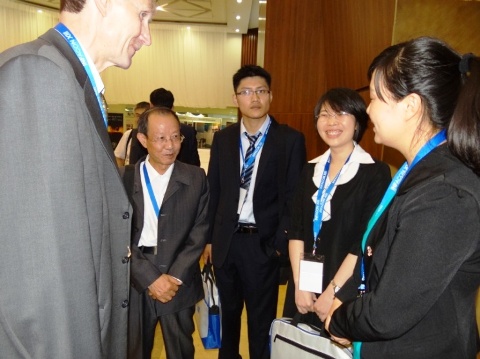 储少军教授带领铁合金与电热冶金梯队其他四名师生参加了会议,并有四篇学术论文在会议上发表。其中博士生陈佩仙和胡冬应邀在大会上分别作了题为“电硅热法生产300系列不锈钢的新工艺”和“矿热炉冷凝炉衬侵蚀边界的快速计算模型”的报告,王海娟老师和博士生倪善强做的POSTER主题分别为“带式烧结机烧结铬粉矿的新工艺”和“摇包内混合时间的研究”。许多参会者对H动画