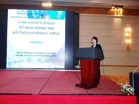 的研究内容表现出浓厚的兴趣,尤其是陈佩仙同学论文中提出的用电硅热法冶炼300系不锈钢的新工艺,在会上引起了很大反响。该项目已经获得国家自然科学基金资助(No.51274030),相关的研究工作正在进行当中。