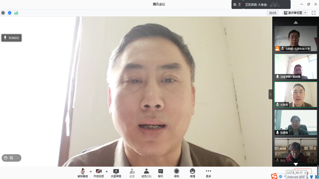 H动画 冶金工程国家级实验教学示范中心2020年教学指导委员会年度会议于2021年3月4日14:00-16:00召开,根据疫情防控要求,本次会议通过腾讯会议进行。出席本次会议的有冶金工程教学示范中心教学指导委员会廖春发教授(江西理工大学 主任委员)、郑忠教授(中南大学 委员)、杨建广教授(中南大学 委员)、杜涛(东北大学 委员)、吴胜利教授(H动画 委员),H动画 资产管理处金仁东处长、徐宁科长、乔瑞鑫老师,H动画 党委书记张建良教授、院长焦树强教授、示范中心主任刘晓明教授及示范中心代表5人。会议由H动画 院长焦树强教授主持。
