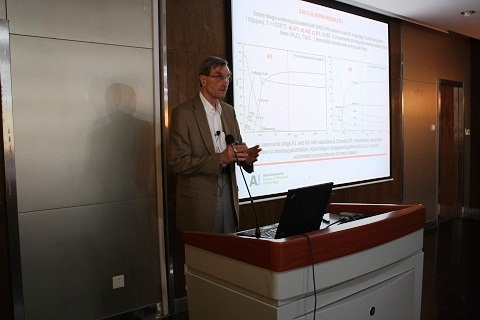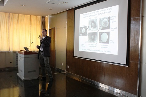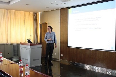 Shouyi Sun则作了题为“Research on slags and properties of high temperature melts”的报告。在报告正式开始之前,Shouyi Sun先给听众们介绍了CSIRO、CSIRO的课题及研究进展。在之后Steven Wright 博士以“Improving Antimony Production At Hillgrove Gold Mine”为题,为大家介绍了此项目所做的工作,以及取得的成果。