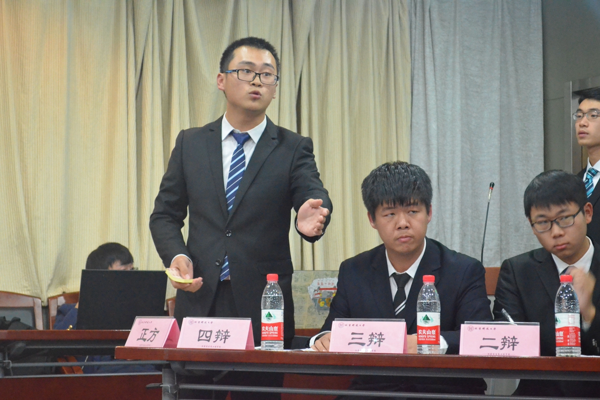 首先,正方一辩姜英豪同学先进行立论陈词,姜英豪同学围绕“宽松式管理不是不管理,而是有一定的管理底线的前提”展开了论述,表明正方观点,强调了宽松式管理可以提高学生的社会适应能力。陈词有利,逻辑清晰。随后反方四辩刘哲同学质询正方一辩,刘哲同学抓住了正方对定义的解释进行提问,并表示宽松式管理不是依靠管理者对被管理者进行强力地控制,而是要靠被管理者的自觉性来实现。并且提出了适度管理的概念,最后问正方一辩宽松式管理是否有具体的实施体制。紧接着由反方一辩勾兰同学进行立论主题,勾兰同学再次明确了宽松式管理的定义。并且强调宽松式管理的反面不是严格管理,而应该是在正常管理的基础上又给予自由和放松。随后是正方四辩李帅同学对反方一辩进行质询,李帅同学适度的承认了对方的观点但没有跟着对方的节奏走,而是在适当的机会提出大学不只是一个学习习惯养成的地方,更重要的是我们形成自我人格的阶段,并且反问,难道当代大学生要一直依赖着外界力量而生存下去吗?