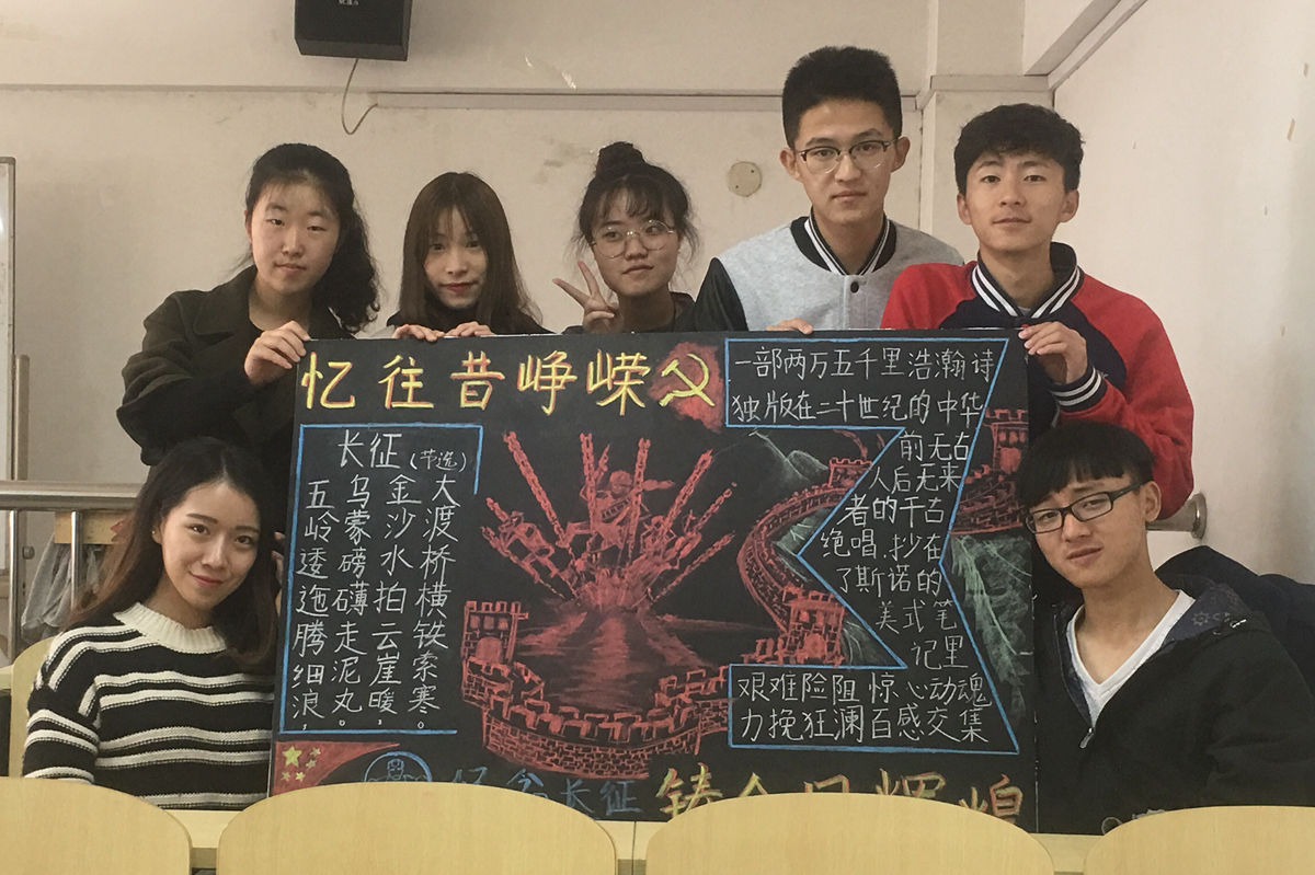 10月23日上午,为集中开展长征精神学习教育,引导学生思考长征精神的深刻内涵,思考当代需要怎样的“长征精神”,H动画 于冶金楼110举行“激活红色基因,共绘不朽丰碑”专题黑板报绘制活动。