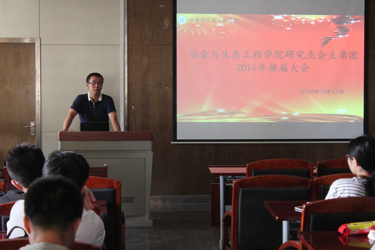 研究生会新任主席杨平同学代表新一届主席团发言。杨平同学表示,新一届主席团将秉承为同学们服务的宗旨,团结同学,共同努力建设具有品牌特色的冶金与生态H动画