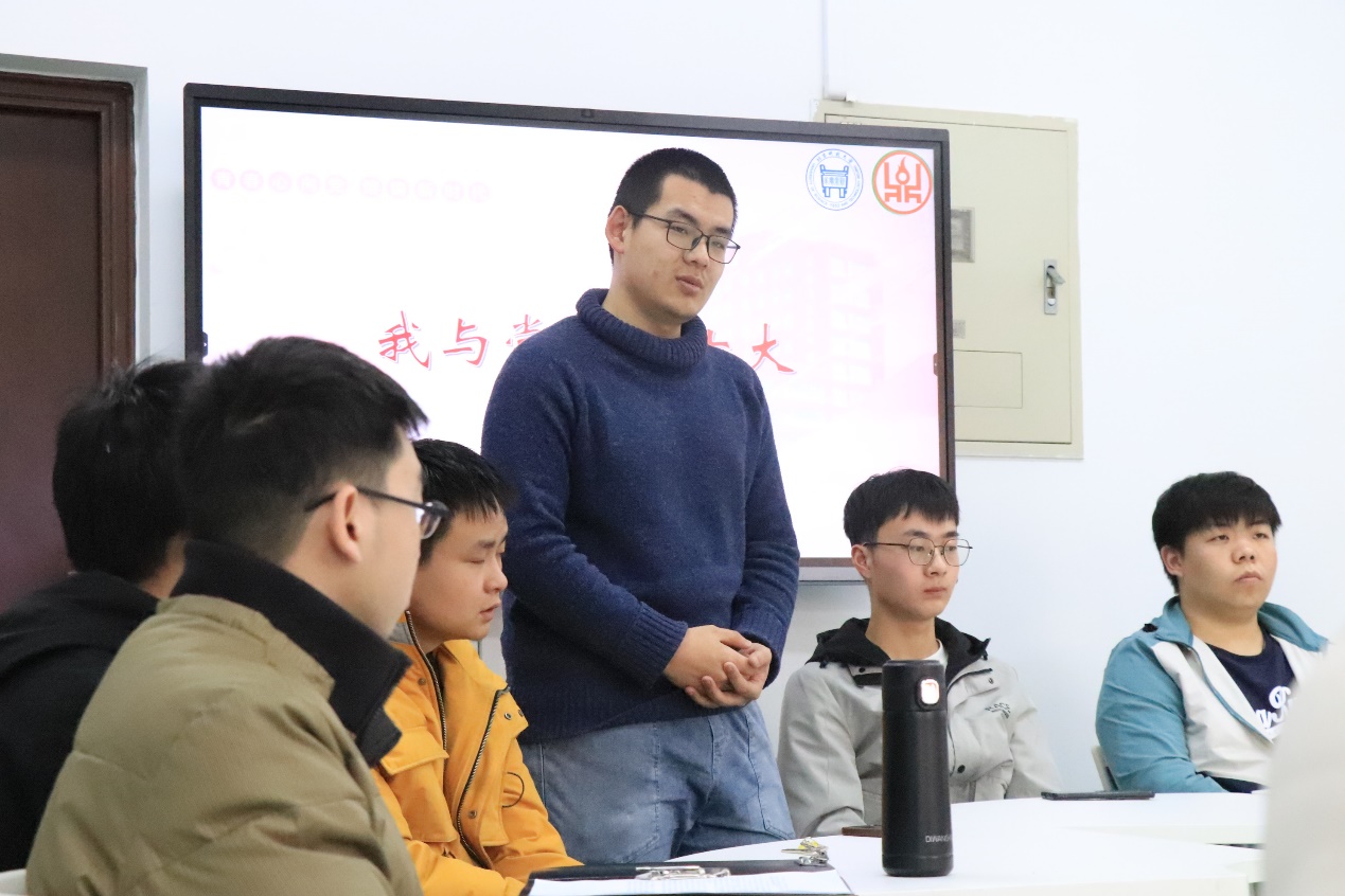 暖场游戏后,同学们的热情被跃动的气氛迅速点燃。辅导员李忆妍结合青年如何践行党的二十大精神出发,从疫情防控政策调整和学生成长发展阶段入手,号召同学们牢固树立“做自身健康第一责任人”的意识,在自身学业、就业和成长发展上踔厉奋发。班级国奖获得者朱绍润、标兵宿舍长陈文豪分别就学习科研、宿舍管理等经验进行分享,号召同学们凝聚起班级精诚团结、齐心奋进的和谐氛围。交流环节中,同学们就“非凡十年”家乡变化、自身规划与未来发展方面踊跃分享发言。