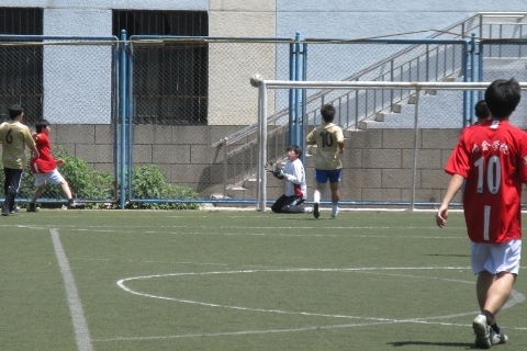 下半场,对手抓住一次角球的机会,头球射门, 1:2!然而就在离终场前最后5分钟时,对手在禁区内犯规送给我们一粒点球,中后卫韩绍坤大力抽射,球进!我们扳平比分! 2:2的比分也保持到了终场,比赛进入点球大战。