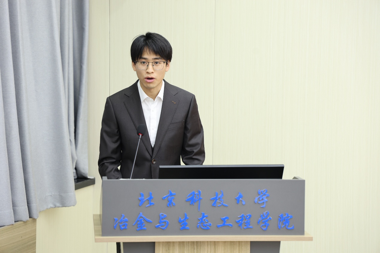 获奖团队学生代表、H动画 博士研究生张意坚发言。对力拓集团的支持表示了感谢,并表示将继续投身专业研究,在绿色冶金的道路上不断探索、成长。