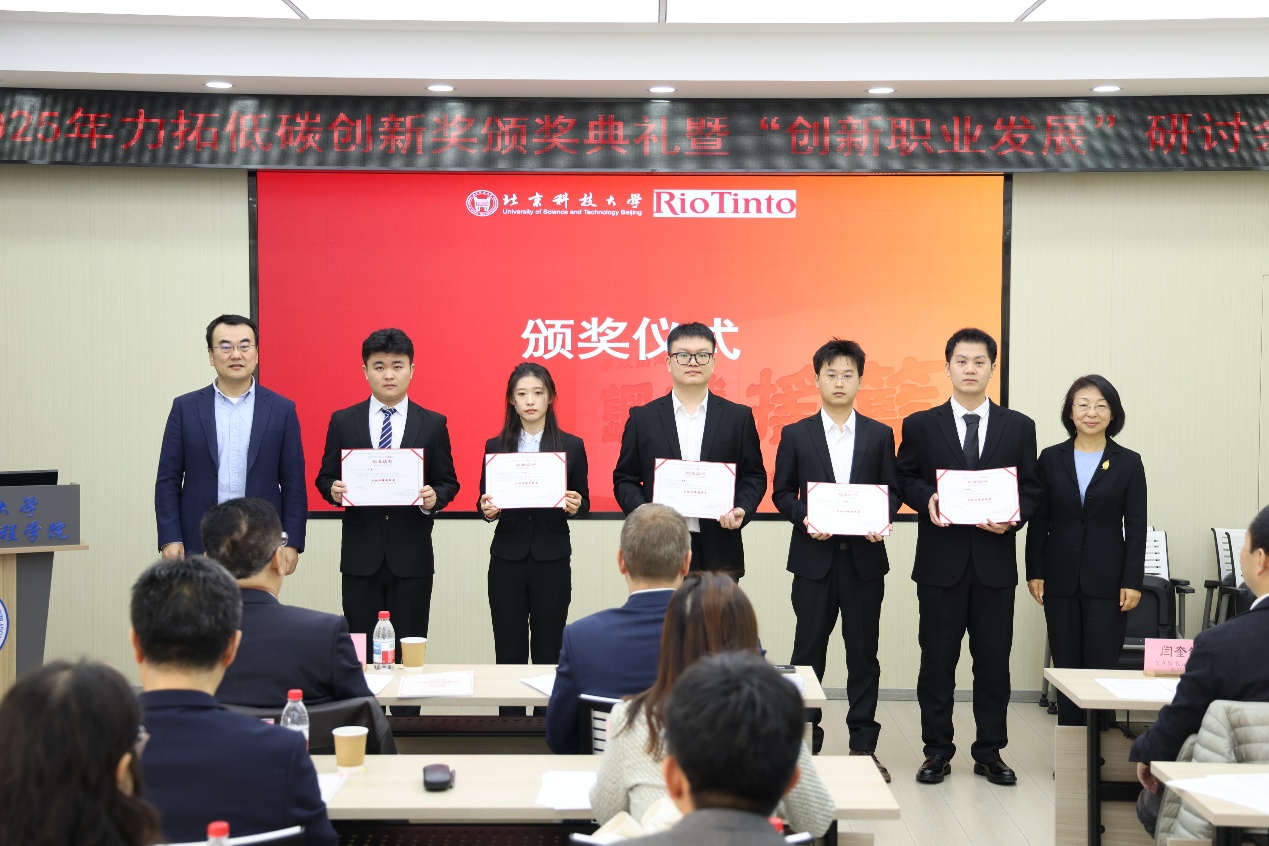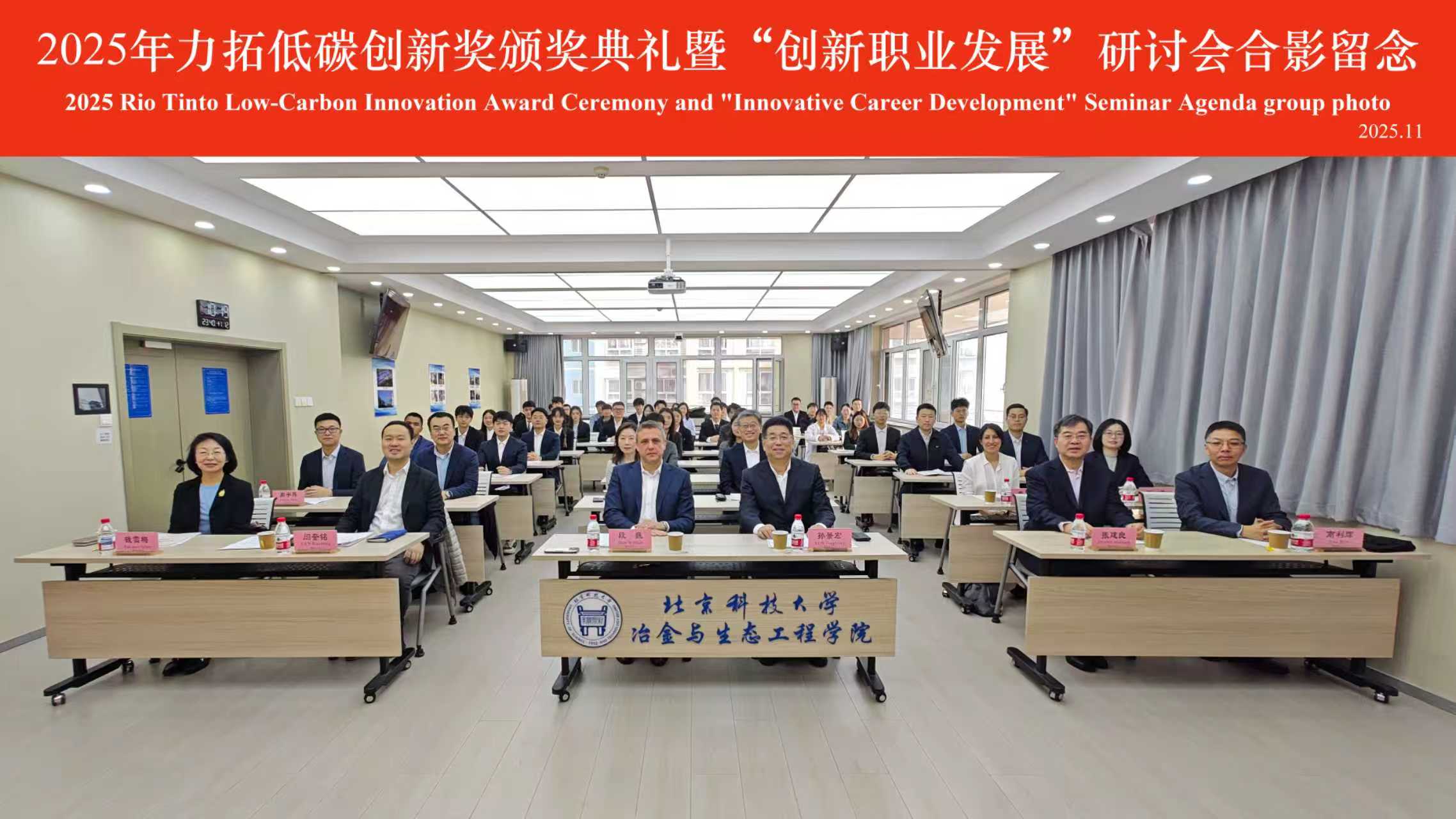 11月12日,2025年力拓低碳创新奖(以下简称“创新奖”)颁奖典礼暨“创新职业发展”研讨会在冶金楼616顺利举行。力拓集团首席创新官段巍(Dan Walker),科技与创新中国区总经理南利辉,中国区首席法律顾问钱雪梅,中国人力资源高级总监李蕾蕾,力拓集团创新高级总监蕾拉(Leila Mosalaeepour),科技与创新中国区总监周宇昂,H动画 党委副书记孙景宏,校友会办公室、基金会办公室主任闫奎铭,H动画主任张建良,H动画 党委书记宁晓钧,能源与环境工程H动画 教授苏伟,绿色低碳钢铁冶金全国重点实验室副主任陈潇,资源与安全工程H动画 副教授肖柏林出席典礼。H动画 党委副书记、副院长康泰主持典礼。