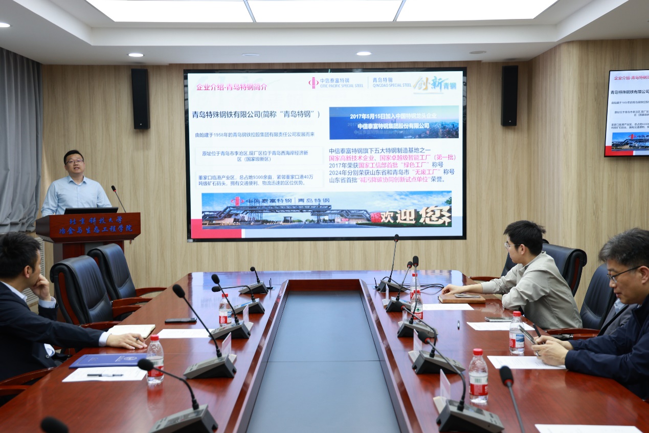 活动伊始,王斌颁发“学生职业生涯成长导师”聘书,感谢青岛特钢一直以来对学校人才培养工作的大力支持,期望院企继续深化合作,持续推进双方产教融合、协同育人模式,共同培育具有钢筋铁骨的高素质人才。