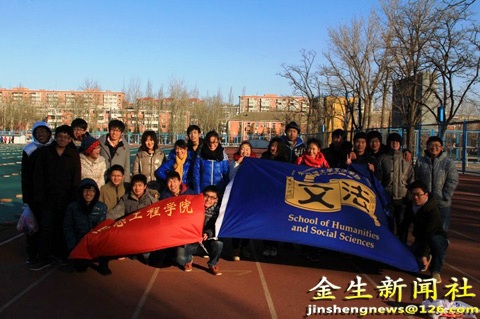 的一组组成一支队伍,这样十二个小组就组成了六支比赛队伍。虽然冬天的北京寒风凛冽,但是这丝毫不影响同学们的比赛热情,参赛同学奋力奔跑,场下同学呐喊助威,让整个操场显得活力四射。