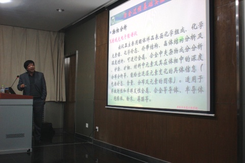 接着,冯老师详细介绍了实验技术中心的各项设备和功能,对技术中心的金属、非金属等无机材料的物相分析、化学元素分析及热分析、高温金属熔体、粉体、矿石的冶金性能分析等做了详细介绍。如:Kratos AXIS Ultra DLDX射线光电子能谱仪(XPS)主要可用来进行表面分析、元素成分、组成、价态、价带分析、晶体结构及深度剖析等。MT-1000粉体物性测定仪可用来检测粉体密度、堆角、喷流性及流动性等等。此外,冯老师就科研课题的实验研究方法以及科研实验需要考虑的问题为2012级研究生进行了分析,为新生进入研究生阶段的实验活动打下了基础。