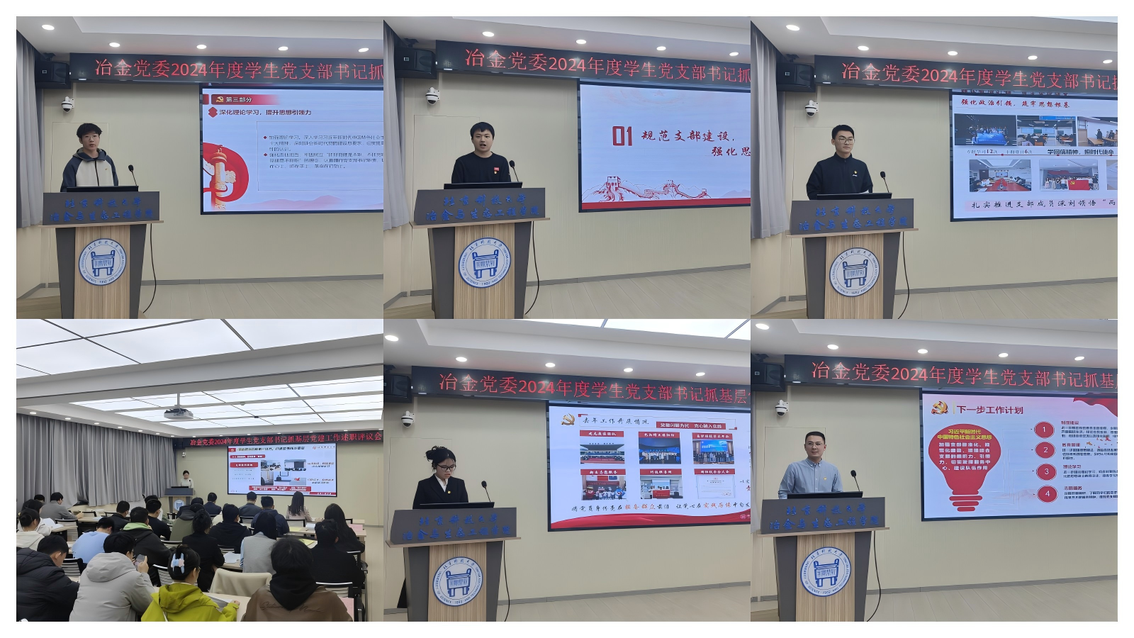 宗燕兵首先对各位党支部书记的辛勤工作表示肯定,并逐一进行了点评。宗燕兵指出,2025年是“十四五”收官之年,也是“十五五”谋划之年,是落实冶金党委第七次党代会精神的重要之年。学校提出“深入实施面向2025世界一流大学‘钢铁脊梁’奋进计划”,冶金党委、三家单位和冶金学科将迎来H动画成立、冶金全重中期检查、双一流学科评估、本科教育教学审核评估、巡察整改验收等重点工作。希望全体党支部书记坚持用习近平新时代中国特色社会主义思想凝心铸魂,推动“一融双高”建设,将党的建设与“钢魂”精神融汇于人才培养全过程;夯实党建基础,强化党支部政治功能和组织功能,加强冶金特色思想政治教育;加强纪律建设,全面压实从严治党政治责任,巩固深化党纪学习教育成果。在冶金党委和各行政单位的带领下,抢抓机遇、乘势而上、团结进取、真抓实干,奋力谱写教育强国建设北科冶金新篇章。