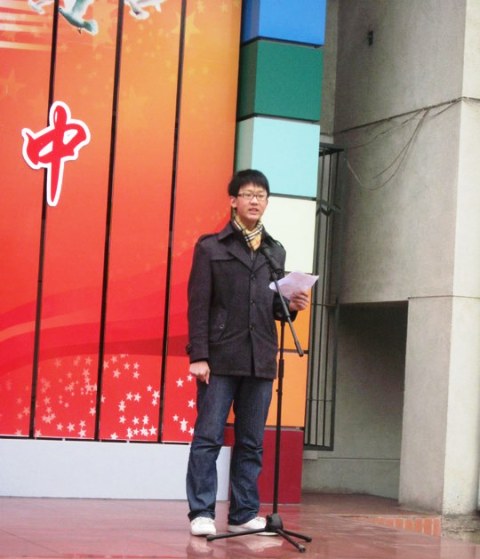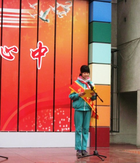11级赵天骄代表支教志愿者发言,他讲述了雷锋同志的两个故事,带领大家重温雷锋事迹,激起学生们对学习雷锋精神的热情,并表达了H动画