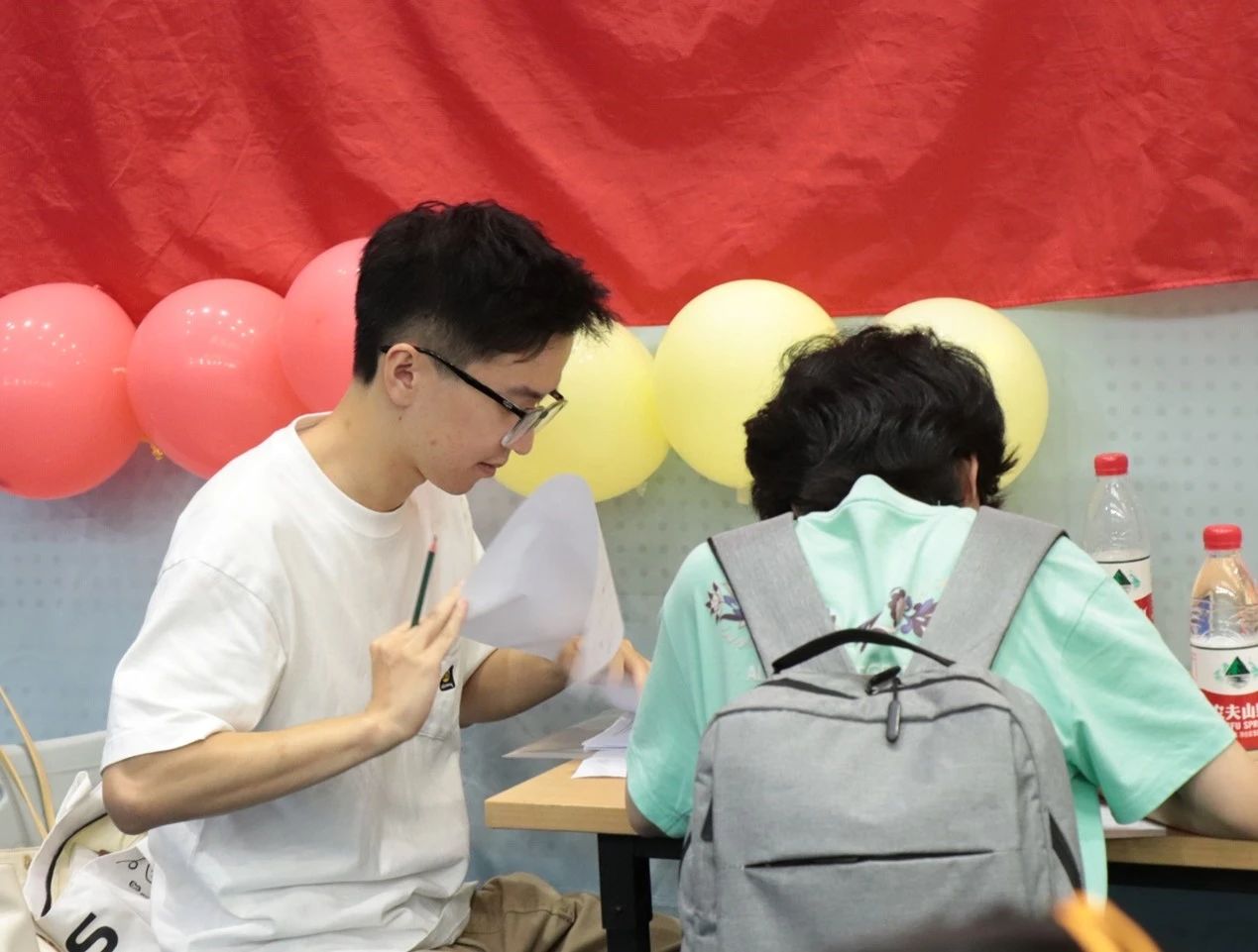 报到环节有条不紊地进行着。新同学们认真地交上自己的档案,这一份份档案,如同他们迈向大学的通行证,承载着过去的努力与未来的期望。同时,交上师韵读后感,字里行间流露着对知识的渴望和对未来的思考。