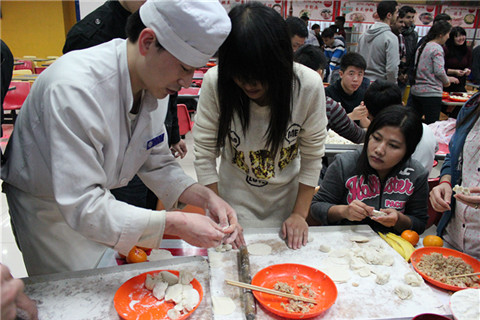 活动伊始,辅导员郝勇飞介绍了本次活动的目的、意义及流程。随后,大家大展身手,热火朝天地开始包饺子活动。冶院学子热情细致地向外国友人讲解饺子这一中华民族传统美食的制作方法,外国朋友们更是表现出色,在冶院学子的帮助、食堂师傅的指导下很快掌握了包饺子的技巧。