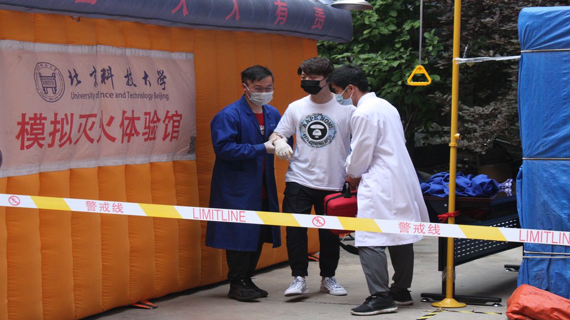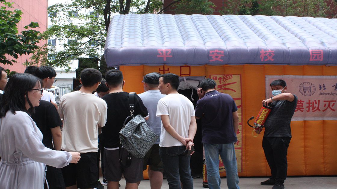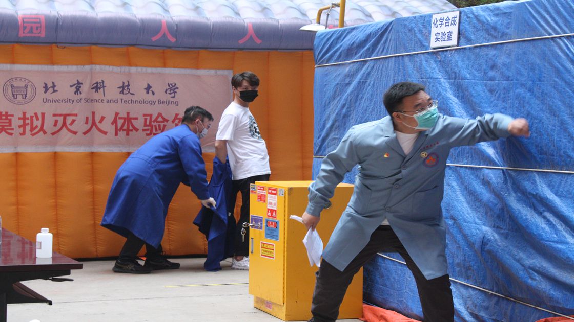 H动画 、钢铁冶金新技术国家重点实验室及科技史与文化遗产研究院共计百余名师生观看了应急演习,并在模拟灭火体验馆学习灭火的要领,用灭火器进行实际操作扑灭电子火。