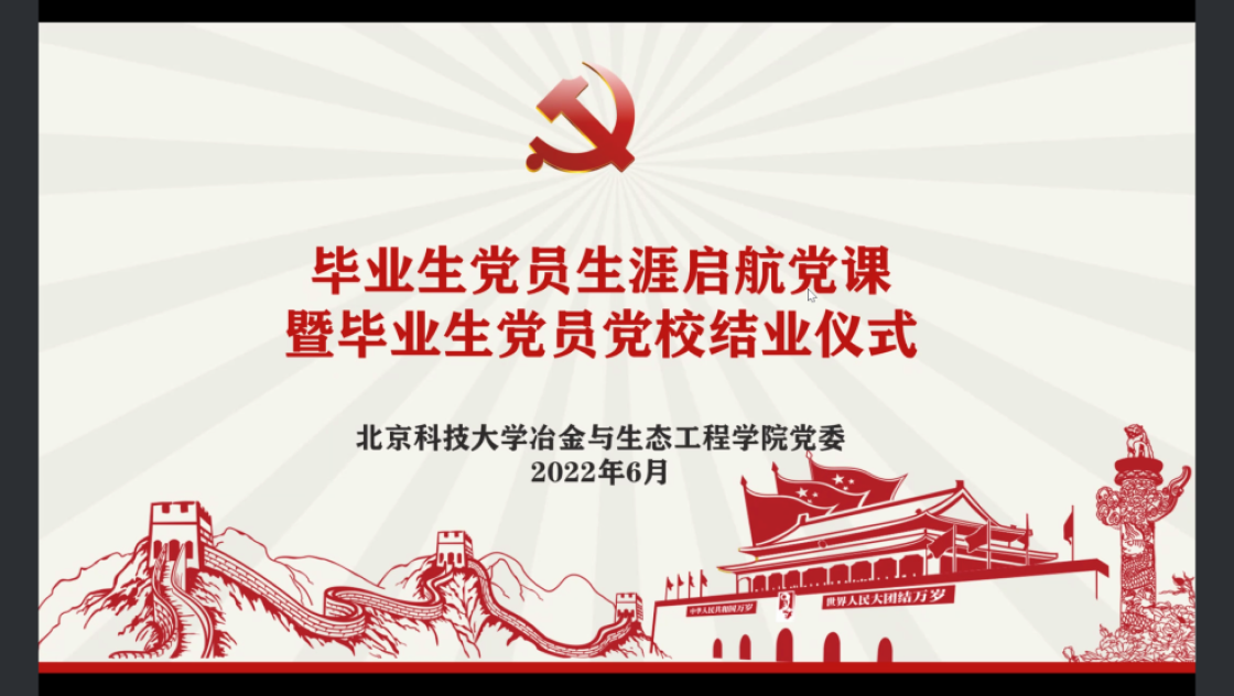 张建良以“不忘百年路,启航新征程”为主题进行党课讲授。他指出,疫情防控关键之时,年轻一代党员同志冲锋在前,让红色的党旗在疫情防控工作的志愿蓝中高高飘扬,充分彰显了新时代青年不遗余力在担当中作为,在磨砺中成长。他从习近平总书记给H动画 15位老教授们的回信精神出发,对毕业生党员提出三点希望,一是要坚定信念,志存高远,党员同志们要始终坚守初心,为民族复兴、国家富强无私奉献、无畏向前;二是要明德修身,勇担责任,毕业生党员们要以钢铁报国为己任,努力成为铸就科技强国、制造强国的钢铁脊梁;三是要奋勇争先,勤于实践,站在人生的新起点,冶金学子们带着北科赋予的印记,心怀憧憬,满怀感激,练就过硬本领,在祖国的大江南北建功立业,光荣的喊出“请党放心,强国有我”的铮铮誓言。